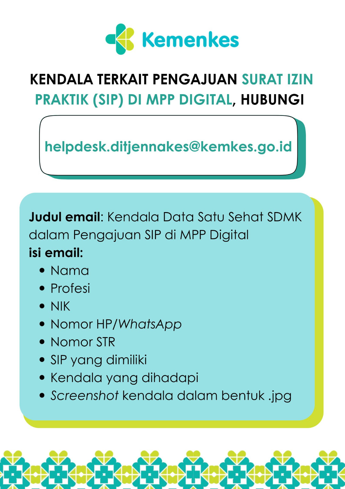 Judul Email | Kendala Data Satu Sehat SDMK dalam Pengajuan SIP di MPP Digital |